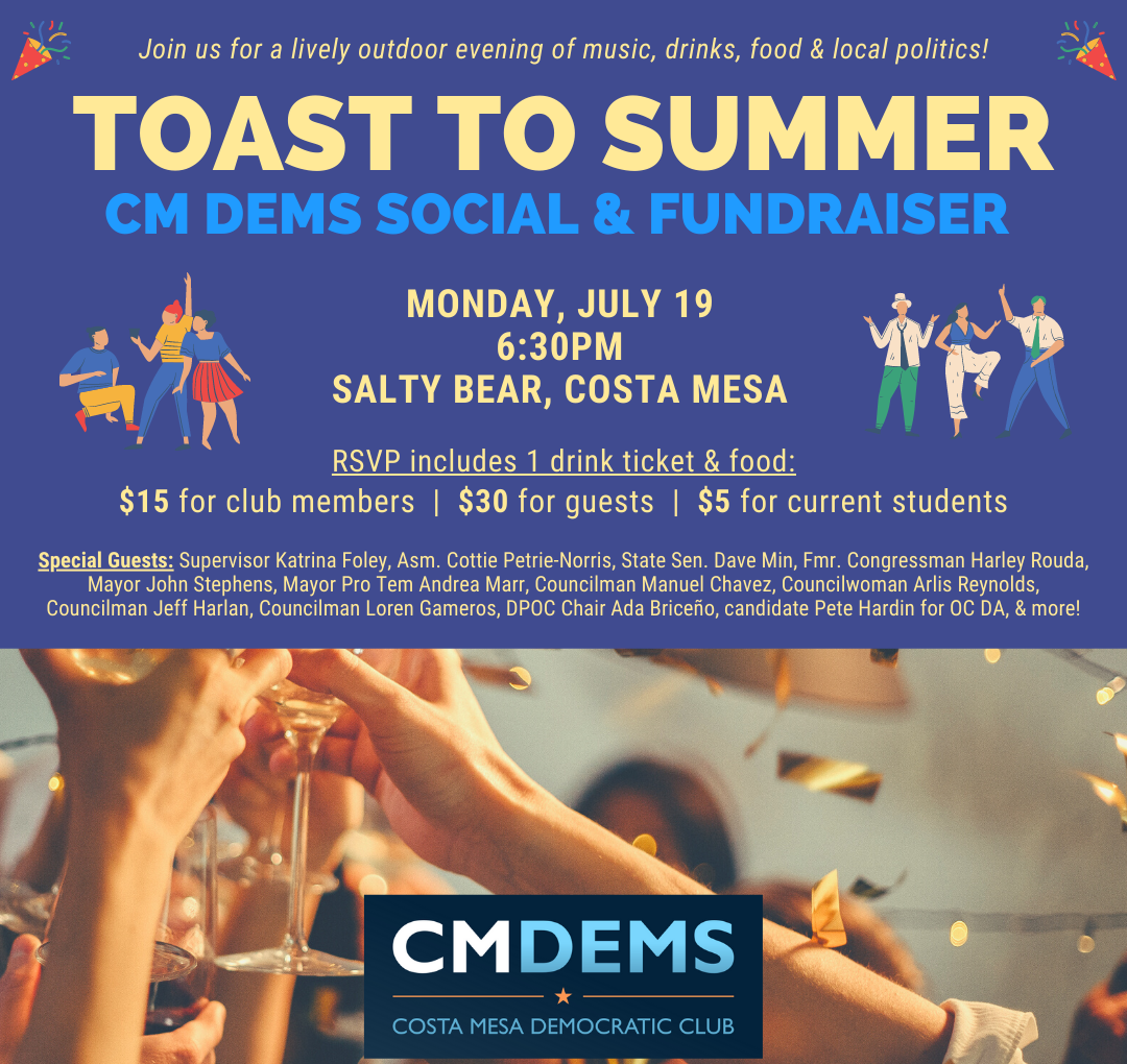 July 19 Social & Costa Mesa Democratic Club Fundraiser (Live!)